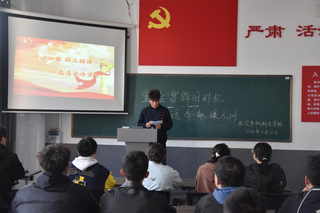 为传承弘扬雷锋精神,推动雷锋精神在校园浸润传播,引导青年学子将理想信念转化为具体行动,2026年3月17日航空机械制造学院于跳马校区三教202开展“重拾雷锋旧时忆 共话奉献暖人间”主题宣讲活动,全体团学干部参加参加了此次活动。