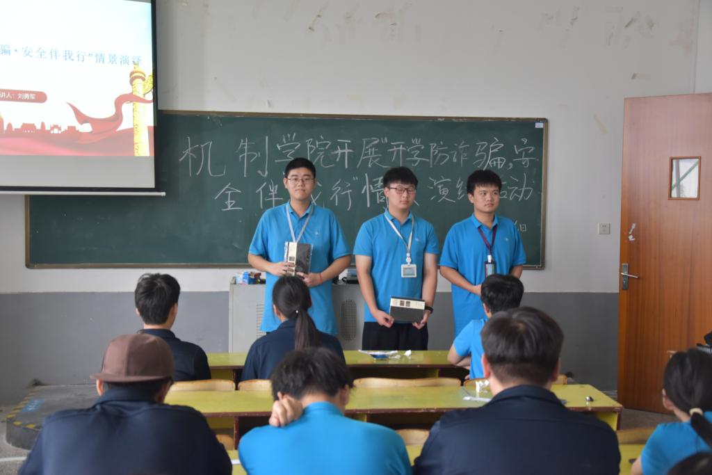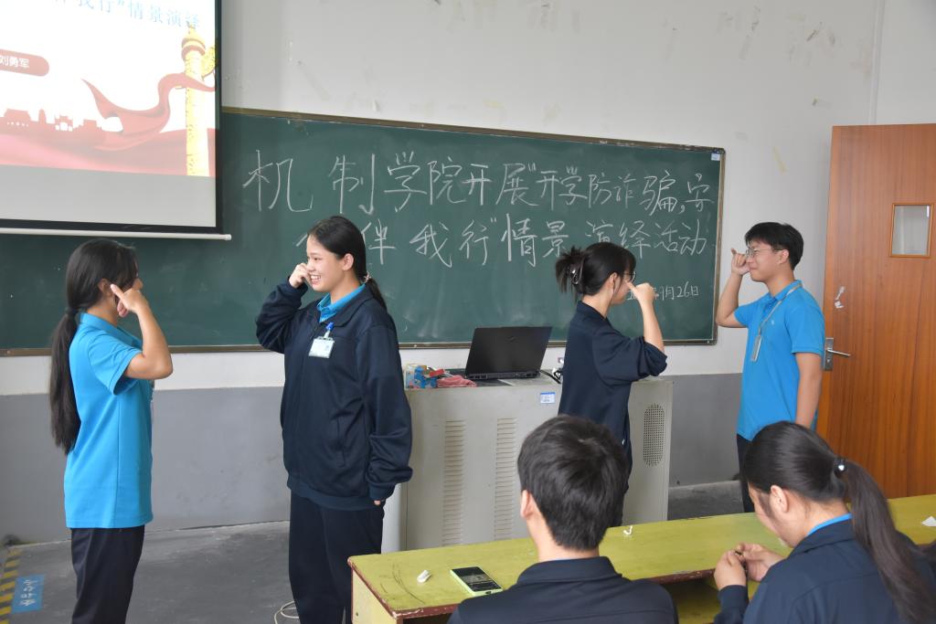 为切实增强学生防范意识,提升应对诈骗能力,营造安全稳定的校园环境,2025年9月29日,机制学院在跳马校区第三教学楼302教室组织开展了“携手防诈骗・安全伴我行”情景演绎活动。活动人员由大二大三学生组成,以情景演绎的方式,着力筑牢校园防诈防线。