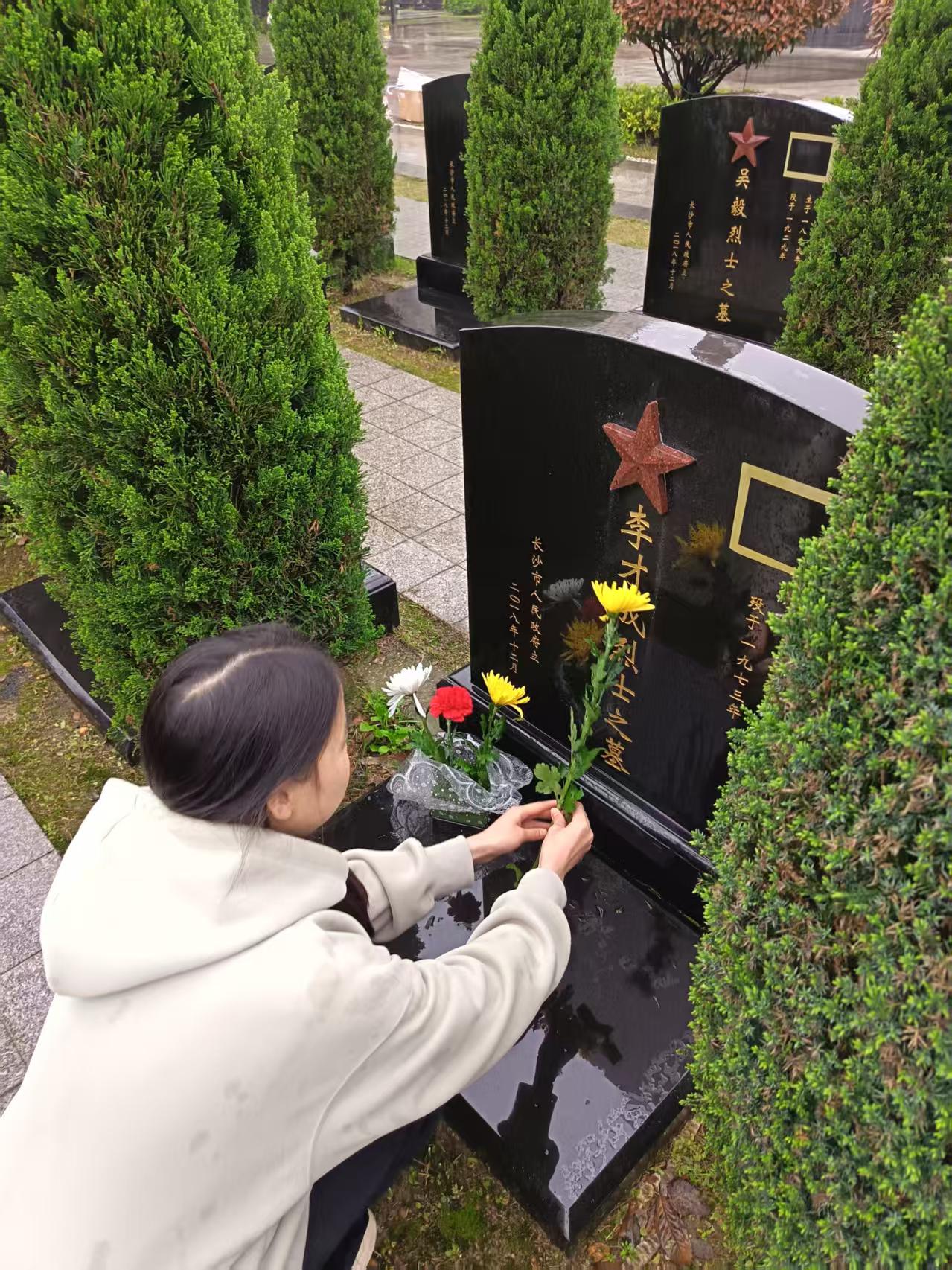 学生在烈士墓前祭拜