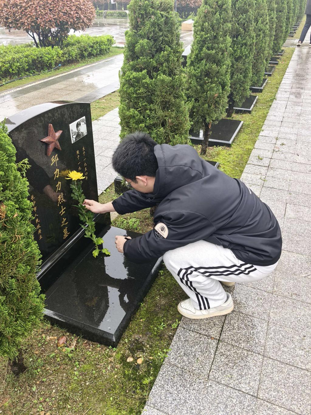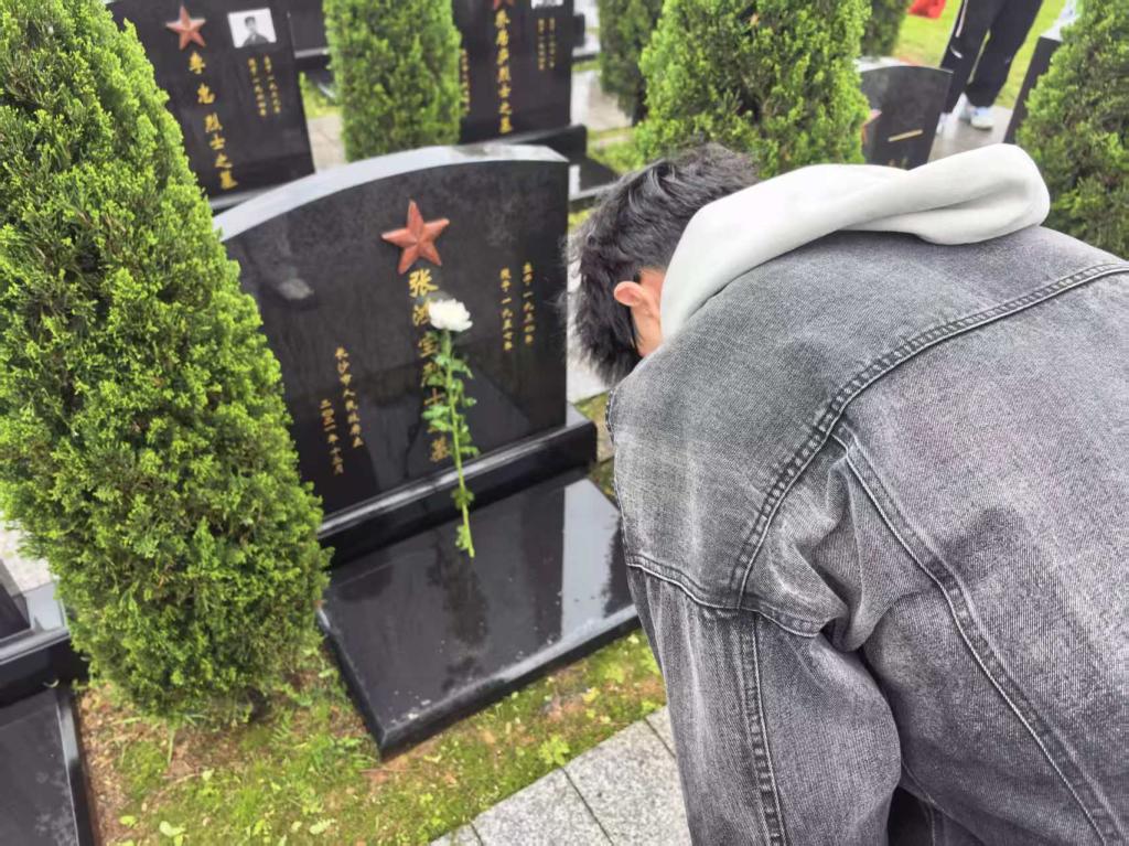活动当天,同学们身着整洁衣服,手持鲜花与清洁工具,怀着崇敬肃穆的心情有序步入烈士陵园。苍松翠柏掩映下,烈士纪念碑巍峨矗立,诉说着革命先辈为国家独立、民族解放、人民幸福抛头颅、洒热血的峥嵘岁月。在庄严的纪念碑前,全体同学整齐列队,低头默哀,深切缅怀为民族大义英勇献身的革命先烈,表达对英雄们的无限哀思与崇高敬意。随后,同学们依次缓步上前,将手中洁白的鲜花轻放于纪念碑前,鞠躬致敬,用最质朴的方式寄托追思,铭记先烈们的英勇事迹与奉献精神。祭拜仪式结束后,同学们迅速化身志愿公益者,分工协作开展陵园卫生清理公益行动。用实际行动守护烈士陵园的庄严肃穆,为先烈们营造干净整洁、安宁肃穆的安息环境。