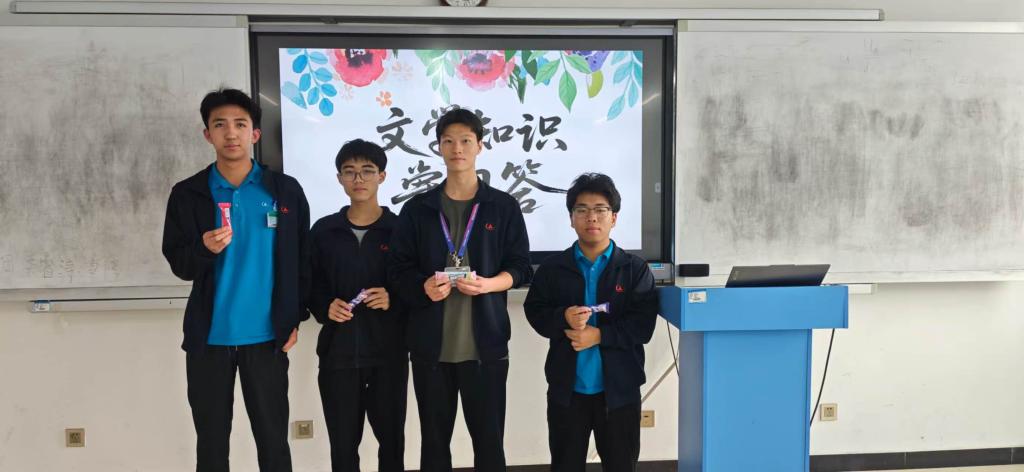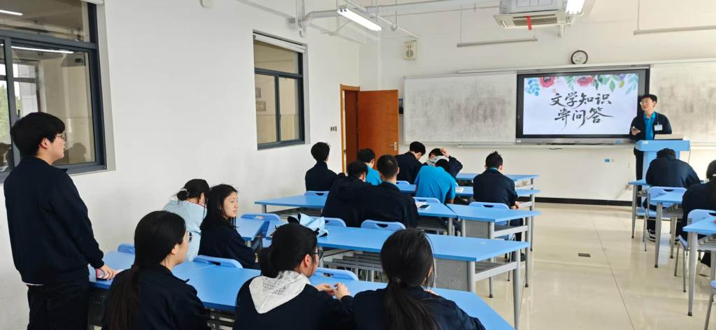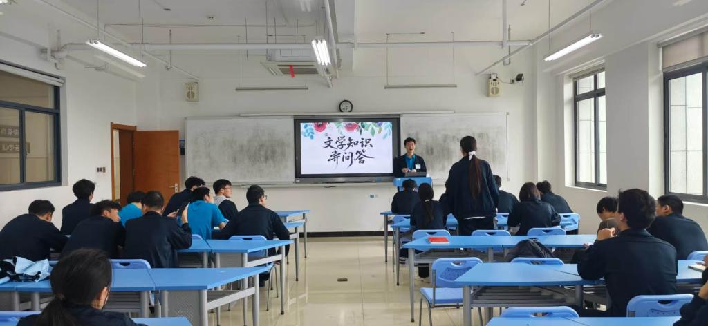 分享间隙,趣味十足的文学常识问答环节将现场氛围推向高潮。题目涵盖古今中外文学常识、经典作品细节等多个方面,同学们踊跃举手、积极抢答,时而为答对一道题欢呼,时而为一道难题凝神思考。小小的问答不仅是知识的比拼,更成为了生动的文学课堂,让大家在轻松愉快的氛围中加深了对文学的理解。问答过后,读书寄语分享环节正式开始。同学们依次走上台前,结合自己读过的书籍,分享书中收获的知识与感悟,讲述那些触动自己的道理与思考。一句句真诚的分享,传递着文字里的力量,也让在场的同学深受触动。“在《平凡的世界》里,我读懂了普通人的坚韧,也更明白了努力的意义。” 一位同学在分享时说道,台下响起了热烈的掌声。