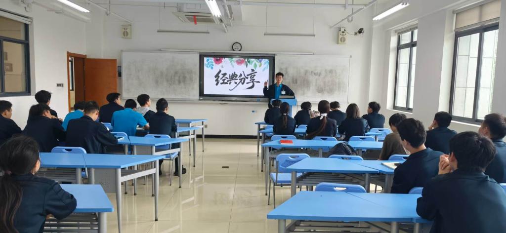活动现场,同学们有序落座,开启了文学经典内容分享环节。大家依次走上前,或是朗读一段触动心灵的文字,或是分享自己与一本书的故事,从经典名著到当代散文,从红色读物到科幻作品,不同的文字在这里碰撞出思想的火花。面对熟悉的篇目,同学们格外专注,分享者的声音时而激昂,时而温柔,仿佛带着大家穿越时空,与文字背后的作者对话,与书中的人物共情。
